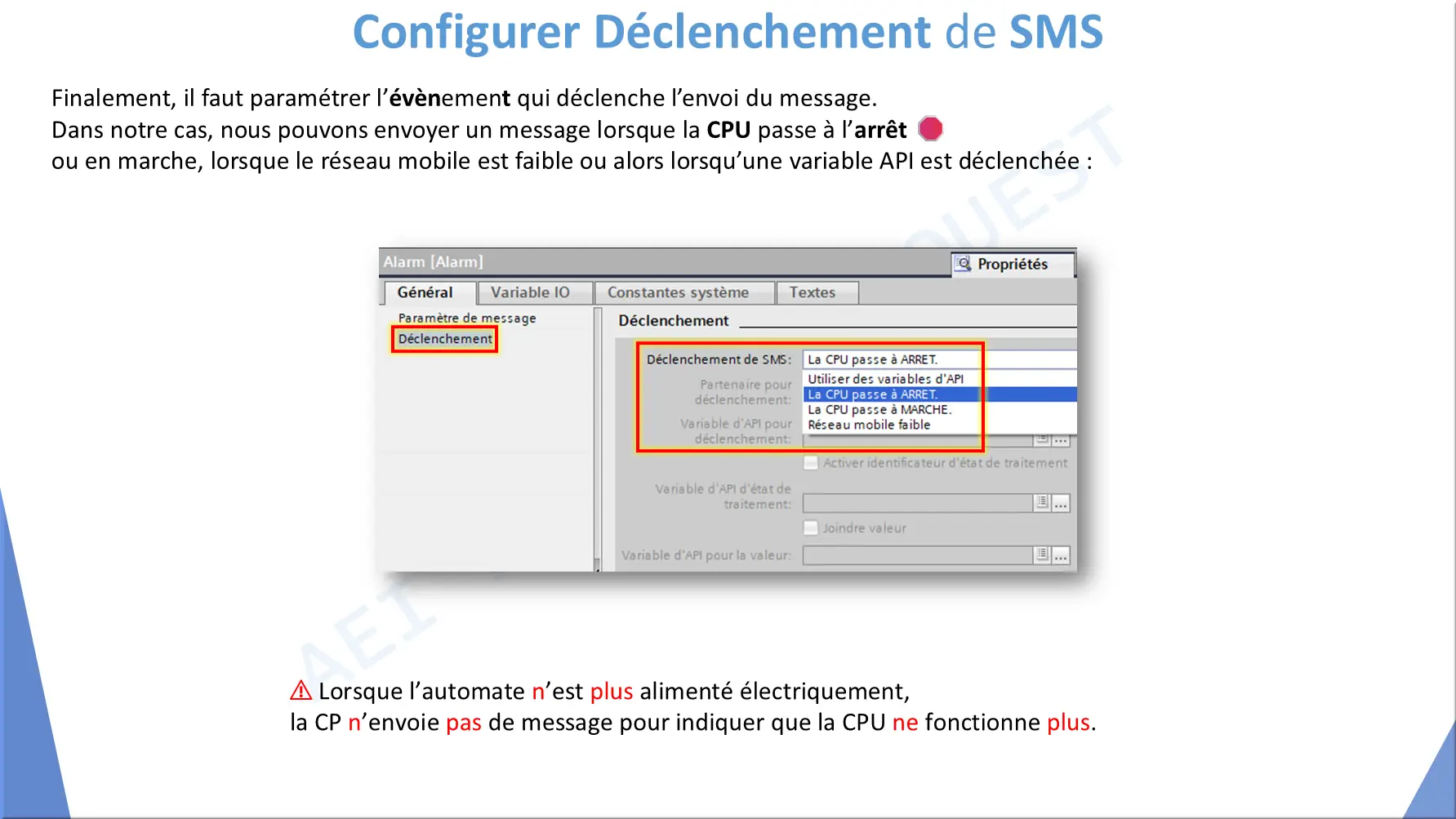 Paramétrer alarme CPU